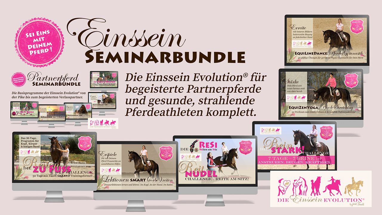 Alle Programme der Einssein Evolution® von der Pike bis zur Piaffe zum Selbstlernen und das komplette DressurCoach-Praxistraining: