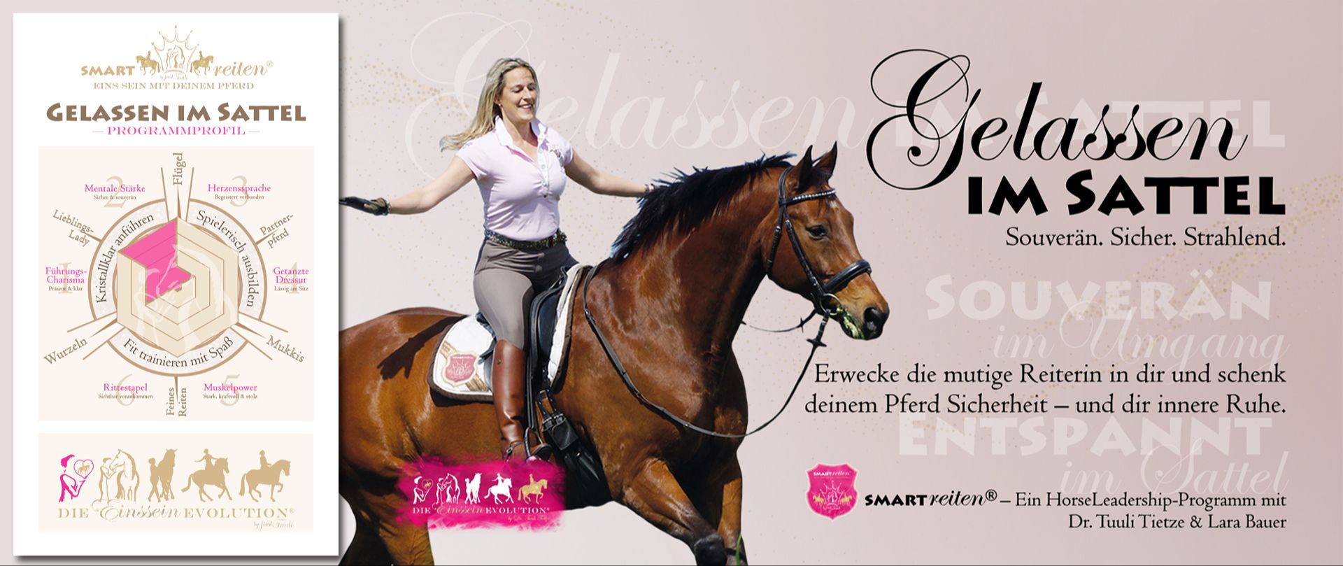 Sei sicher – im Sattel & in dir. Reite angstfrei, souverän und strahlend. Hab dein Kopfkino entspannt im Griff – auch wenn’s brenzlig wird. Sei der sichere Anker für dein Pferd.