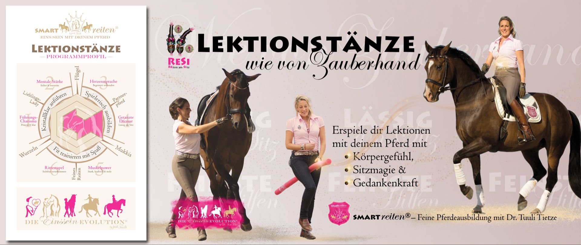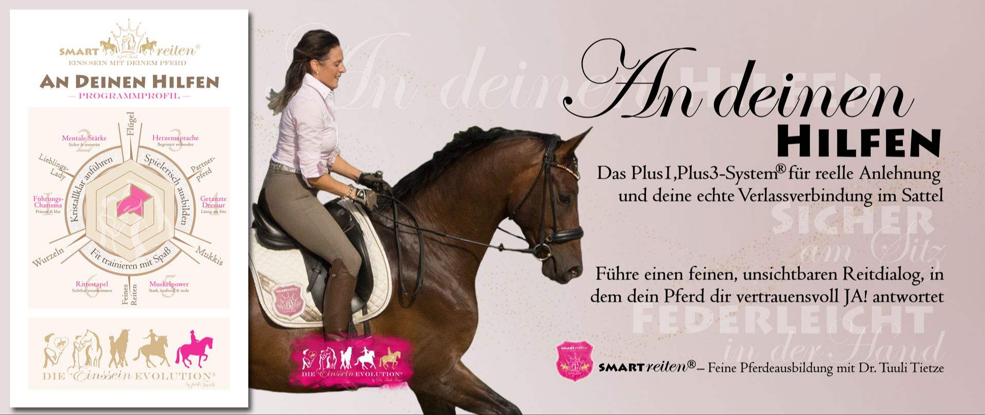 Verinnerliche feine Hilfen mit Reitnudel ReSi – und ruf sie mit Gedankenkraft ab. Lad dein Pferd ein, Lektionen zu tanzen – geschickt & stolz. Reite lässig am Sitz – ohne Zügelkraft.